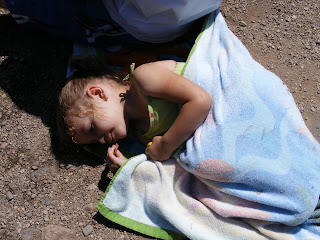 Saturday night, Craig had arranged for almost all of Allen's good college buddies to have a party. Craig also happens to be an avid bike racer (who knows if that is the right term or not). So, he casually told us he would be riding 100 miles that morning and then be home in time to have the party. Whaaaa? Are you kidding? I couldn't walk down the street and host a party for over 20 people without pulling my hair out. So, while he was racing around Utah, we drove up Tibble Fork Canyon to the reservoir. Of course, it was beautiful. The water was c-o-l-d! straight snow run off. It was that heart-stopping, extremity-numbing water that is only found in the high elevation lakes. Allen actually screamed like a girl when he dove in. Lexi followed close behind but started crying because it was so uncomfortable. Allen carried her around in the deeper water.